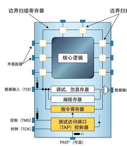 然而,硅厂商很快就意识到使用TAP访问寄存器所提供的例如调试和编程等其他功能的益处。用于JTAG测试而特意加入设备中的主要寄存器叫作边界扫描寄存器(Boundary Scan Register)。