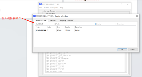 输入设备名称如STM8L152R8,或输入设备厂商、输入处理器。
