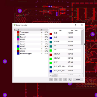 区域检查器是基于对话框的基本分析工具,用于分析电路板上的所有电源平面。您可以一目了然地看到层覆盖率、夹板数量、缝合状态等信息。它还提供了一种快速定位区域(电源平面)的方法,以及一种直接编辑区域属性的方法。您可以直接从布局包中的工具菜单或通过键盘快捷键启动。