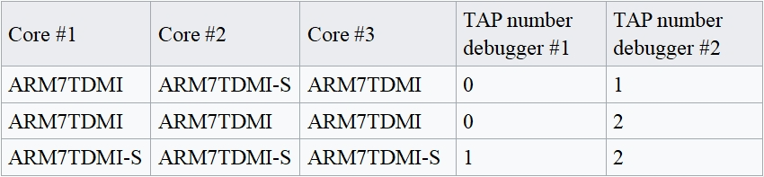 两个Degbugger共享同一个物理连接。通过JTAG设置选择要调试的核心,具体如下所述。